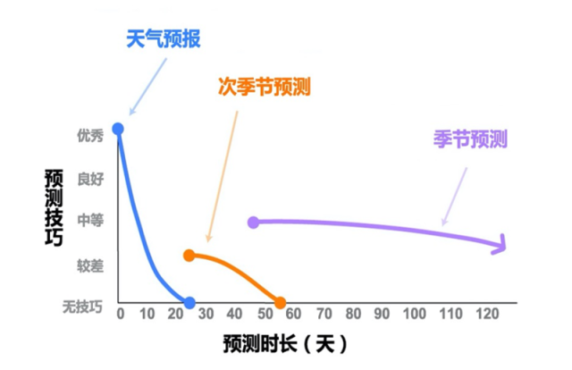 圖為天氣預(yù)報和次季節(jié)預(yù)測的區(qū)別示意。