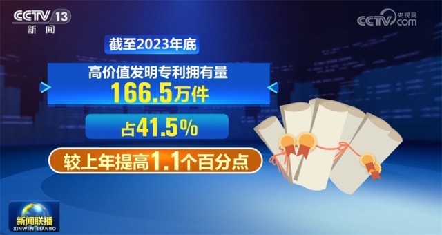 國務(wù)院新聞辦公室1月16日舉行新聞發(fā)布會,國家知識產(chǎn)權(quán)局相關(guān)負責(zé)人介紹,截至2023年底,我國國內(nèi)(不含港澳臺)發(fā)明專利有效量為401.5萬件,同比增長22.4%,首次超過400萬件。其中,高價值發(fā)明專利擁有量166.5萬件,占41.5%,較上年提高1.1個百分點。國內(nèi)企業(yè)擁有有效發(fā)明專利290.9萬件,占比增至71.2%,首次超過七成,創(chuàng)新主體地位進一步凸顯。