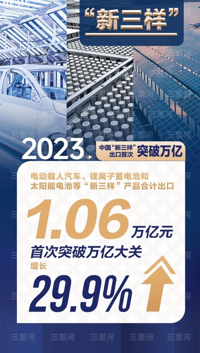 活力來自新動能——制造業(yè)技改投資增長3.8%,高技術(shù)產(chǎn)業(yè)投資增長10.3%,快于全部固定資產(chǎn)投資的增速。2023年電動載人汽車、鋰電池和太陽能電池等“新三樣”產(chǎn)品合計出口1.06萬億元,首次突破萬億大關(guān)。中國經(jīng)濟在加快培育新質(zhì)生產(chǎn)力中不斷發(fā)展壯大。