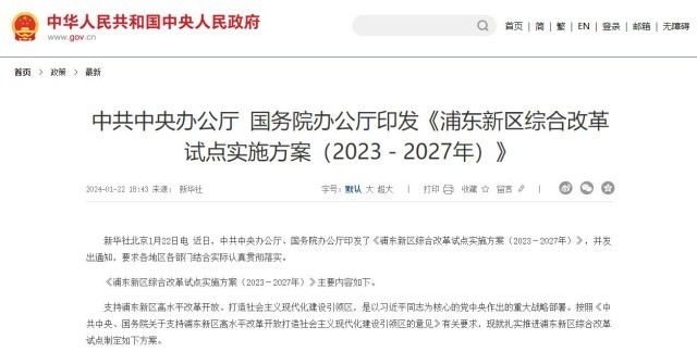 近日,中共中央辦公廳、國務(wù)院辦公廳印發(fā)了《浦東新區(qū)綜合改革試點(diǎn)實(shí)施方案(2023-2027年)》。