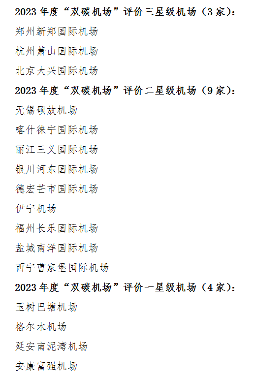 根據(jù)中國民用機(jī)場協(xié)會當(dāng)日發(fā)布的2023年度“雙碳機(jī)場”評價結(jié)果,鄭州新鄭國際機(jī)場、杭州蕭山國際機(jī)場、北京大興國際機(jī)場等16家機(jī)場成為2023年度“雙碳機(jī)場”。至此,我國已有35家“雙碳機(jī)場”。