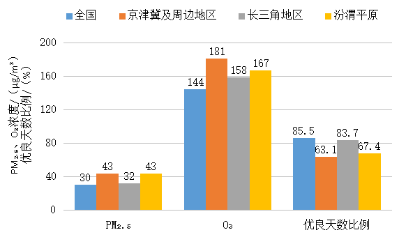 1—12月,全國339個地級及以上城市平均空氣質量優(yōu)良天數比例為85.5%,扣除沙塵異常超標天后,實際為86.8%,好于年度目標0.6個百分點,較疫情前的2019年同期(82.0%)上升3.5個百分點;平均重度及以上污染天數比例為1.6%,扣除沙塵異常重污染天后,實際為1.1%;PM2.5平均濃度為30微克/立方米,優(yōu)于年度目標(32.9微克/立方米)2.9微克/立方米,較疫情前的2019年同期(36微克/立方米)改善16.7%;O3平均濃度為144微克/立方米,同比下降0.7%,較疫情前的2019年同期下降2.7%;PM10平均濃度為53微克/立方米,同比上升3.9%;SO2平均濃度為9微克/立方米,同比持平;NO2平均濃度為22微克/立方米,同比上升4.8%;CO平均濃度為1.0毫克/立方米,同比下降9.1%。