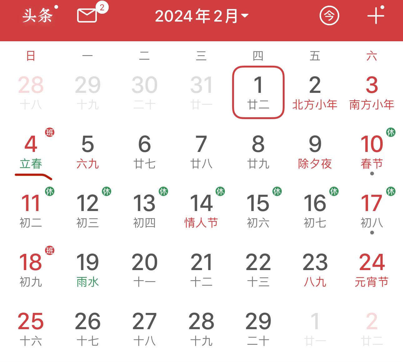 例如, 2024年的“立春日”是2月4日,即農(nóng)歷兔年的臘月二十五,而下一個(gè)“立春日”是2025年2月3日,已經(jīng)進(jìn)入了農(nóng)歷蛇年的正月,所以有說法稱,2024農(nóng)歷年“無春”。