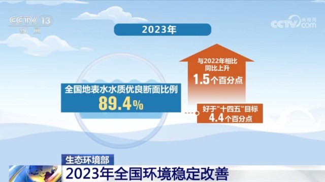 據(jù)生態(tài)環(huán)境部,2023年全國地表水水質優(yōu)良斷面比例為89.4%,與2022年相比上升了1.5個百分點;長江、黃河干流全線水質穩(wěn)定保持在二類;全國地下水一類至四類水質點位比例為77.8%,同比上升0.2個百分點;全國近岸海域優(yōu)良海水水質面積比例為85%,同比上升3.1個百分點。