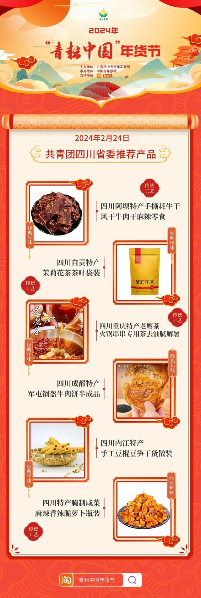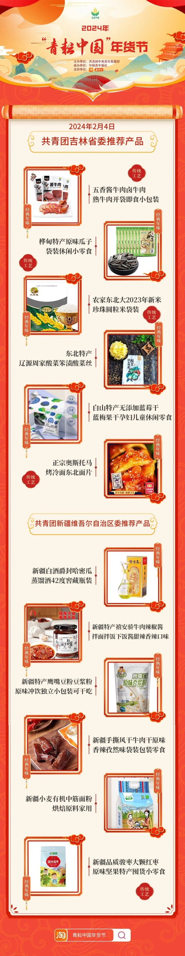 2024年“青耘中國”年貨節(jié)將于1月31日至2月24日,開展“一日兩省”主題日活動(dòng)。用戶可在淘寶APP搜索“青耘中國年貨節(jié)”進(jìn)入專題頁選購產(chǎn)品。
