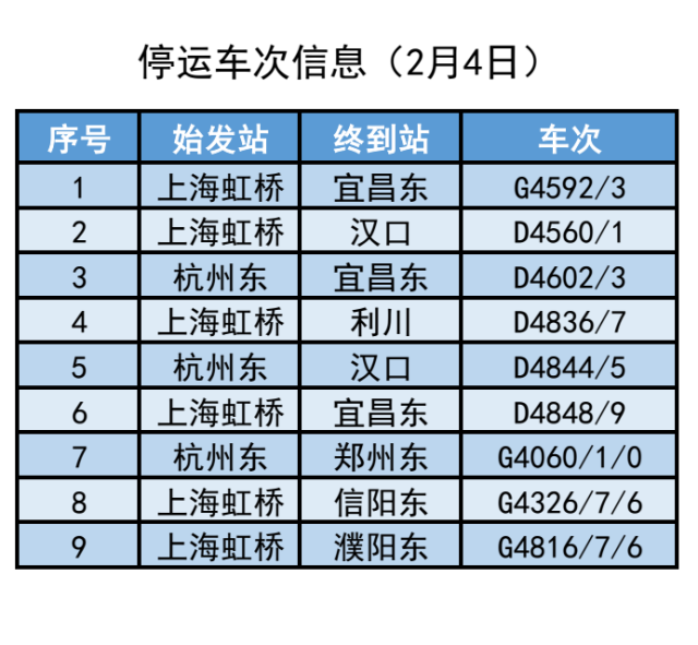 截至2月3日7時30分,計劃停運2月3日至2月4日間39趟旅客列車。