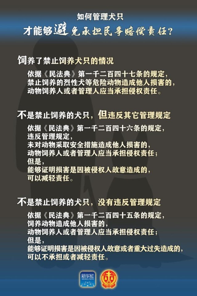 “據(jù)統(tǒng)計(jì),僅就養(yǎng)犬看,2022年中國城鎮(zhèn)犬只數(shù)量為5119萬只。實(shí)踐中,致人嚴(yán)重?fù)p害的主要是烈性犬等危險(xiǎn)犬種。”最高人民法院民一庭庭長陳宜芳介紹,《民法典》《中華人民共和國治安管理處罰法》《中華人民共和國動(dòng)物防疫法》以及相關(guān)地方法規(guī)規(guī)章等都對犬只飼養(yǎng)人、管理人應(yīng)當(dāng)履行的義務(wù)作出了規(guī)定。