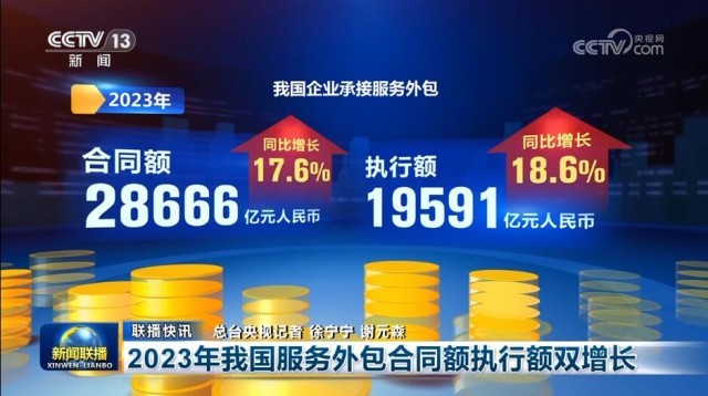 央視網(wǎng)消息:2月5日,《新聞聯(lián)播》報道了2024年1月份中國電商物流發(fā)展、大宗商品供應等情況;2023年,我國服務外包合同額執(zhí)行額實現(xiàn)雙增長,機械工業(yè)主要經(jīng)濟指標穩(wěn)定增長,結合近日金融、交通運輸、優(yōu)化營商環(huán)境等方面發(fā)布的最新消息,一組組數(shù)據(jù)勾勒高質(zhì)量發(fā)展生動圖景,折射出中國經(jīng)濟的強勁脈動與澎湃活力。