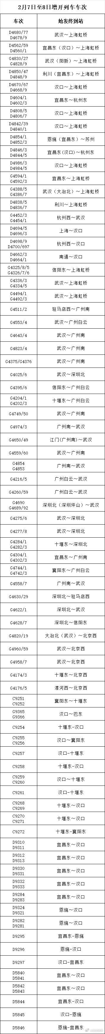 武漢鐵路運(yùn)輸秩序基本恢復(fù) 增開71.5對(duì)夜間高鐵