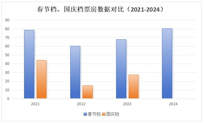 雖然春節(jié)檔有自帶的氛圍屬性,但是中新文娛查閱了近3年的對比:2021年春節(jié)檔票房78.43億、國慶檔票房43.89億;2022年春節(jié)檔票房60.4億、國慶檔票房14.99億;2023年春節(jié)檔票房67.66億、國慶檔票房27.36億。