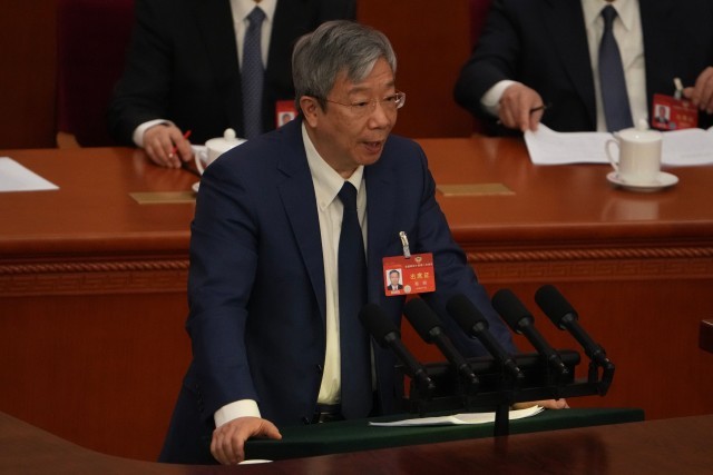 3月7日,全國政協(xié)十四屆二次會議舉行第二次全體會議,全國政協(xié)經(jīng)濟(jì)委員會副主任、中國人民銀行原行長易綱進(jìn)行大會發(fā)言。中青報·中青網(wǎng)記者 李崢苨/攝