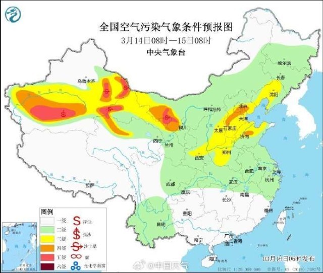 據(jù)中央氣象臺(tái)預(yù)報(bào),14日至17日,受冷空氣大風(fēng)影響,西北地區(qū)大部、華北等地自西向東有一次沙塵天氣過(guò)程。這將是今春首場(chǎng)沙塵天氣,也是今年來(lái)第二輪沙塵過(guò)程,上一次還是春節(jié)假期結(jié)束后的寒潮所帶來(lái)的強(qiáng)沙塵暴過(guò)程(2月17日-2月20日)。