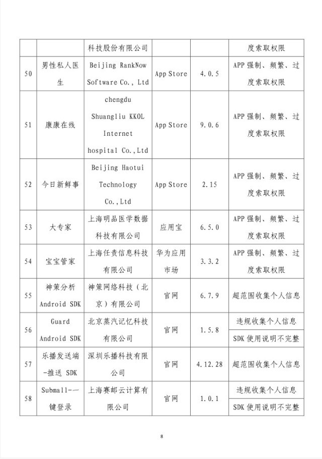 上述APP及SDK應(yīng)按有關(guān)規(guī)定進(jìn)行整改,整改落實不到位的,工業(yè)和信息化部將依法依規(guī)組織開展相關(guān)處置工作。