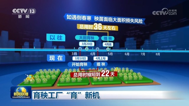 現(xiàn)在,工廠里育秧不再受外界氣溫影響,可以提前到3月10日開始育秧。通過智能化數(shù)字化控制,總用時也縮短到22天,插秧提早到4月上旬。