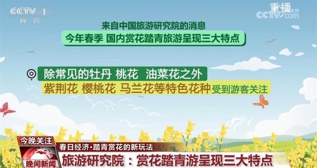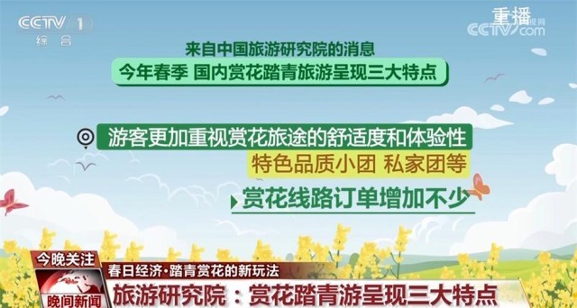來自中國旅游研究院的消息,今年春季,國內(nèi)賞花踏青旅游呈現(xiàn)三大特點:首先,除了常見的牡丹、桃花、油菜花之外,紫荊花、櫻桃花、馬蘭花等特色花種也受到游客關(guān)注;其次,國內(nèi)各大景區(qū)推出與傳統(tǒng)文化相關(guān)的賞花踏青活動,將傳統(tǒng)習(xí)俗體驗與花季美景相結(jié)合;此外,游客也更加重視賞花旅途的舒適度和體驗性,特色品質(zhì)小團、私家團等賞花線路訂單增加不少。