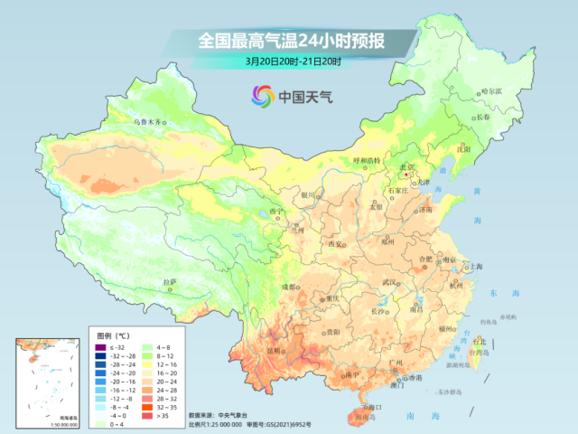 西北地區(qū)東部、華北、黃淮、江淮等地,氣溫高點(diǎn)大多將出現(xiàn)在明后兩天,最高氣溫20℃線最北能推進(jìn)到華北中部,黃淮、江淮一帶最高氣溫將達(dá)到25℃上下。像是蘭州,21日最高氣溫可能達(dá)到23℃,如果兌現(xiàn)將是今年首次突破20℃。西安22日最高氣溫或升至24℃,暖出常年5月上旬的感覺。