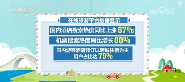 在線旅游平臺數(shù)據(jù)顯示,對清明節(jié)期間的國內(nèi)酒店搜索熱度同比上漲67%,機票搜索熱度同比增長80%,國內(nèi)游客酒店預(yù)訂以跨城住宿為主,用戶占比達79%。國內(nèi)旅游預(yù)訂較熱門的目的地有上海、北京、杭州等。