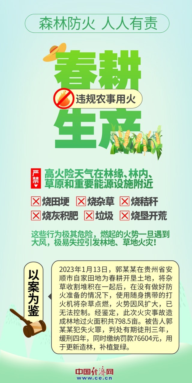 數據顯示,超九成的森林火災都是由人為因素引發(fā)。全面加強森林防火工作,確保森林資源和生態(tài)環(huán)境的安全,是每個公民的責任。希望全社會增強護林防火意識,牢記森林防火“十不要”,從我做起,從小事做起,共同守護綠色家園。