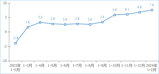 互聯(lián)網(wǎng)業(yè)務(wù)收入穩(wěn)步提升。1—2月份,我國規(guī)模以上互聯(lián)網(wǎng)和相關(guān)服務(wù)企業(yè)(以下簡稱互聯(lián)網(wǎng)企業(yè))完成互聯(lián)網(wǎng)業(yè)務(wù)收入2463億元,同比增長7.6%,增速較2023年全年提升0.8個百分點(diǎn)。