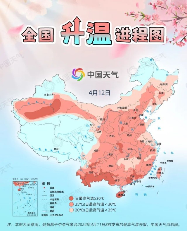 眼下,全國大部處于冷空氣影響間歇期,升溫是主旋律。預計今起三天(4月11日至13日),我國從北到南都將開啟回暖進程,最高氣溫25℃以上的區(qū)域幾乎覆蓋整個中東部,波及20余省份,東北、西北地區(qū)氣溫將大面積創(chuàng)今年以來新高,北方不少地方還會體驗到常年5月中旬才有的超前暖熱。中國天氣網(wǎng)推出全國升溫進程圖,看看哪些地方將沖擊30℃。