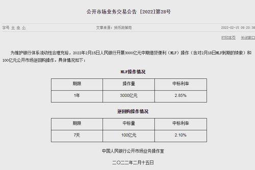 中新財(cái)經(jīng)2月15日電 據(jù)中國(guó)人民銀行官網(wǎng)消息,為維護(hù)銀行體系流動(dòng)性合理充裕,2022年2月15日人民銀行開展3000億元中期借貸便利(MLF)操作(含對(duì)2月18日MLF到期的續(xù)做)和100億元公開市場(chǎng)逆回購(gòu)操作。(完)