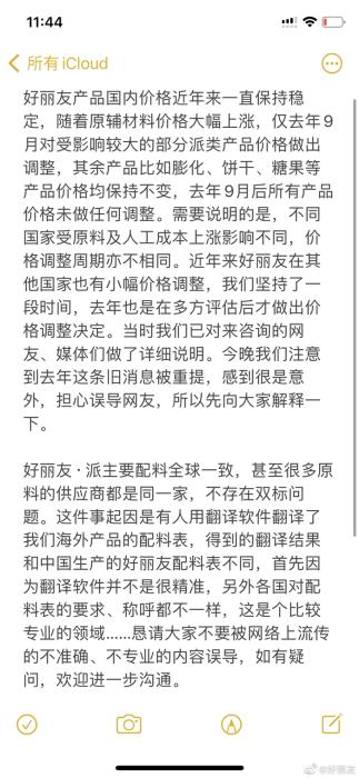好麗友回應(yīng)漲價和配料雙標(biāo):不同國家成本上漲影響不同