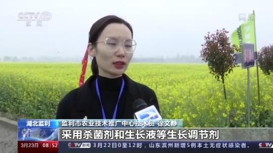 監(jiān)利市農(nóng)業(yè)技術(shù)推廣中心技術(shù)員 徐文靜:采用殺菌劑和生長液等生長調(diào)節(jié)劑,以達(dá)到促進(jìn)油菜正常生長,防菌核病、防早衰、防花不實(shí)和防高溫逼熟的一個(gè)效果,以保證油菜的豐產(chǎn)。