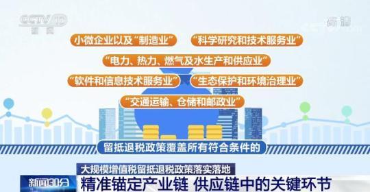 據(jù)介紹,今年實(shí)施的大規(guī)模增值稅留抵退稅政策與前期政策相比,主要聚焦小微企業(yè)和重點(diǎn)行業(yè)。留抵退稅政策覆蓋所有符合條件的小微企業(yè)以及“制造業(yè)”“科學(xué)研究和技術(shù)服務(wù)業(yè)”“電力、熱力、燃?xì)饧八a(chǎn)和供應(yīng)業(yè)”“軟件和信息技術(shù)服務(wù)業(yè)”“生態(tài)保護(hù)和環(huán)境治理業(yè)”和“交通運(yùn)輸、倉儲和郵政業(yè)”,精準(zhǔn)錨定國民經(jīng)濟(jì)運(yùn)行和產(chǎn)業(yè)鏈、供應(yīng)鏈中的關(guān)鍵環(huán)節(jié)。