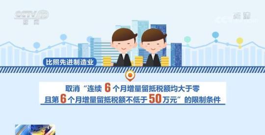 在擴(kuò)大范圍、提高比例以及加快頻次上,與前期政策相比,實(shí)施力度均有所加大。對小微企業(yè)和制造業(yè)等六個行業(yè),不僅允許其退還增量留抵稅額,而且允許其退還存量留抵稅額。將小微企業(yè)和制造業(yè)等六個行業(yè)增量留抵稅額退還比例由60%提高到100%,和先進(jìn)制造業(yè)保持一致。另外,對所有小微企業(yè)和制造業(yè)等六個行業(yè)納稅人均按月退還增量留抵稅額,比照先進(jìn)制造業(yè),取消“連續(xù)6個月增量留抵稅額均大于零,且第6個月增量留抵稅額不低于50萬元”的限制條件。