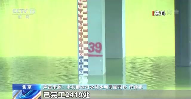 水利部農(nóng)村水利水電司副司長 許德志:兩項數(shù)據(jù)比去年同期增長都在50%以上,已完工2419處,提升了932萬農(nóng)村人口的供水保障水平。