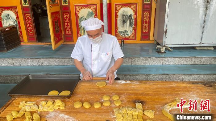 張潤(rùn)明37歲跟隨父親開(kāi)始學(xué)習(xí)豆面餅制作,到現(xiàn)在已有20多年。 楊靜 攝