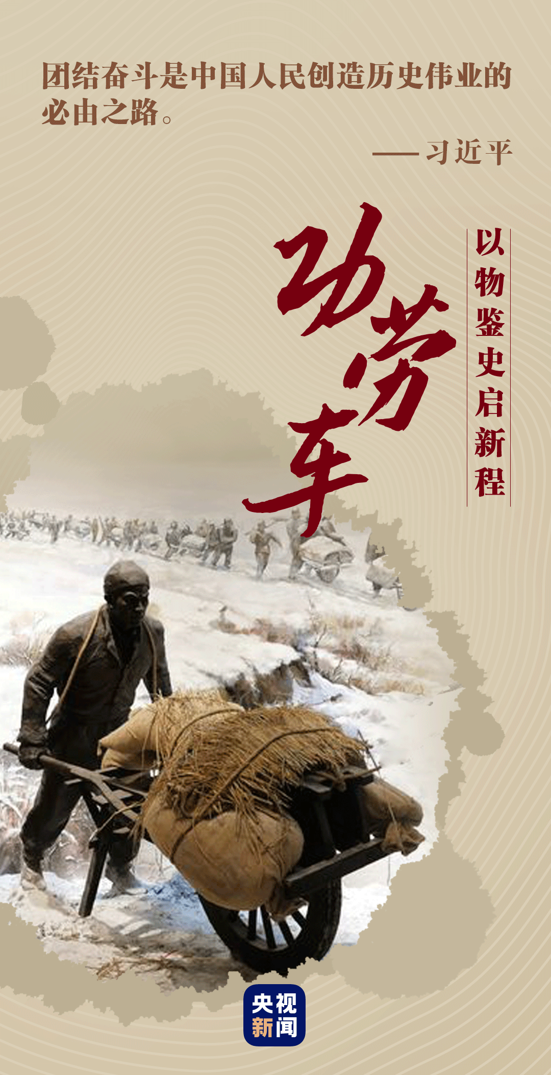 2017年12月13日,習(xí)近平總書記在參觀淮海戰(zhàn)役紀念館時,深有感觸地說:“淮海戰(zhàn)役就是小推車推出來的勝利。我們要好好回報人民,讓人民過上幸福美好的生活?!?/p>