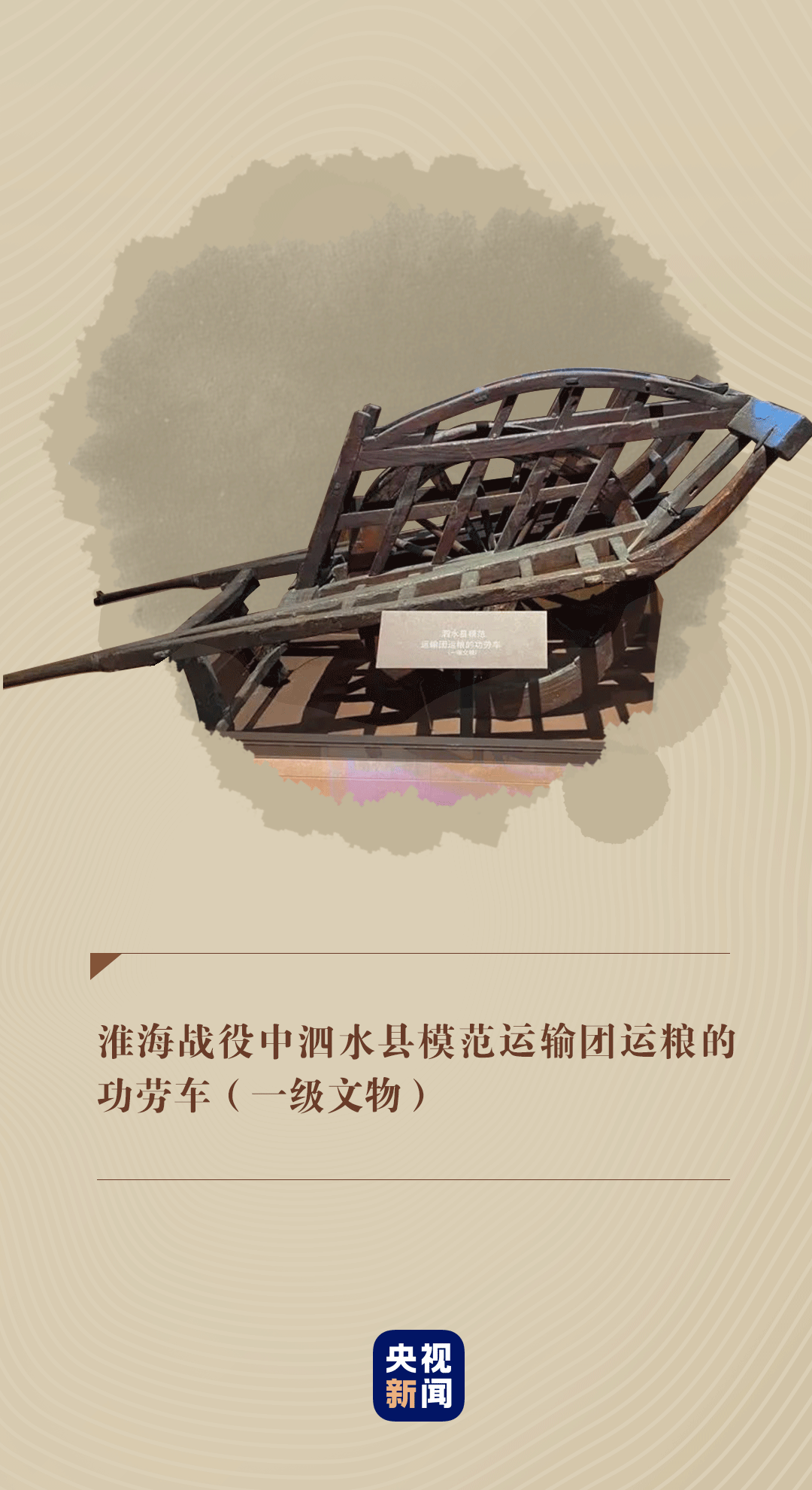 在中國共產(chǎn)黨歷史展覽館,靜臥著一輛淮海戰(zhàn)役中泗水縣模范運輸團運糧的功勞車。它向人們講述著當年硝煙彌漫的戰(zhàn)場上,人民群眾團結(jié)一心,用一輛輛小車推出戰(zhàn)役勝利的感人故事。