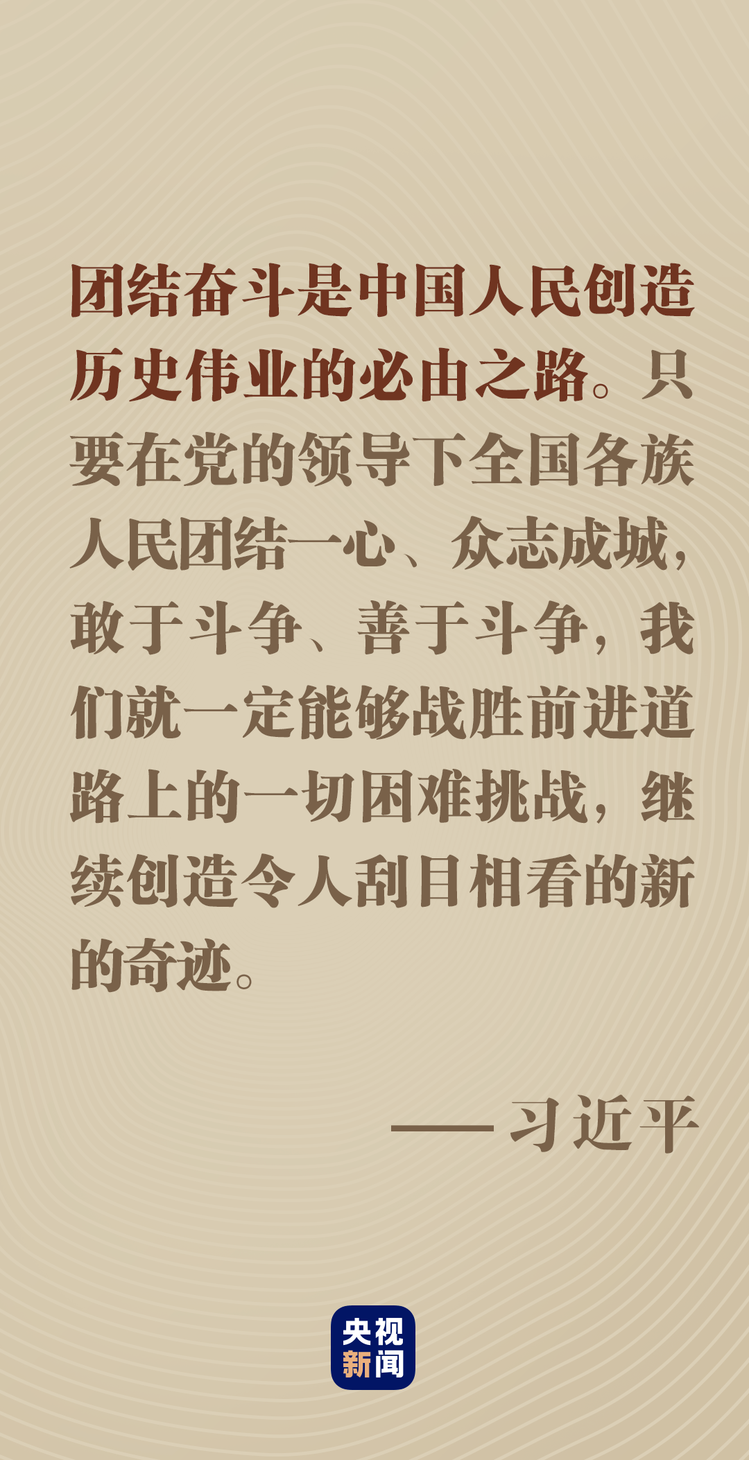 無論風云如何變幻,無論挑戰(zhàn)如何嚴峻,只要我們精誠團結(jié)、共同奮斗,就沒有任何力量能夠阻擋中國人民前進的步伐。