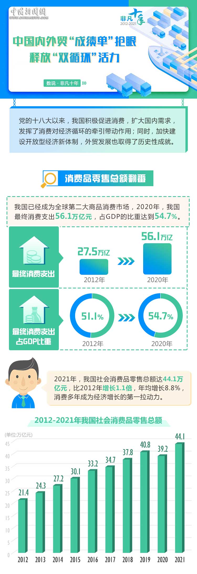 數(shù)說(shuō)·非凡十年|中國(guó)內(nèi)外貿(mào)“成績(jī)單”搶眼 釋放“雙循環(huán)”活力
