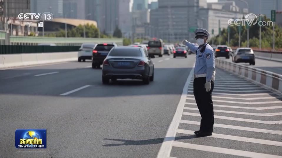 上午10時(shí),上海氣溫已經(jīng)達(dá)到36度,早高峰的延安高架車流量很大,這條路是上海東西向交通主動(dòng)脈,烈日下、滾滾車流中,交警浦佳慧已經(jīng)值守了3個(gè)多小時(shí)。