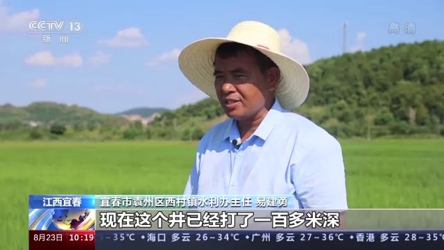 宜春市袁州區(qū)西村鎮(zhèn)水利辦主任 易建勇:現(xiàn)在這個井已經(jīng)打了一百多米深,每小時的出水量在10立方米到20立方米之間,可以滿足這300多畝田的灌溉。
