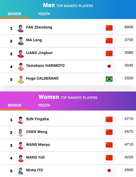 國(guó)際乒聯(lián)更新排名:樊振東、孫穎莎單打世界第一
