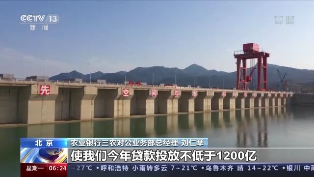 農(nóng)業(yè)銀行三農(nóng)對(duì)公業(yè)務(wù)部總經(jīng)理 劉仁舉:我們上半年累計(jì)投放水利貸款超過了640億元,在歷年同期當(dāng)中是最多的,下一步我們將會(huì)圍繞國(guó)家重大水利建設(shè)項(xiàng)目,加大支持力度,實(shí)行最優(yōu)惠的利率,使我們今年的貸款投放不低于1200億元。