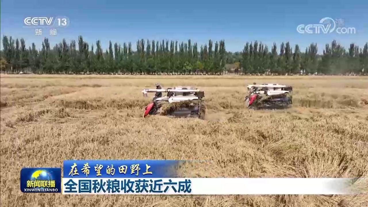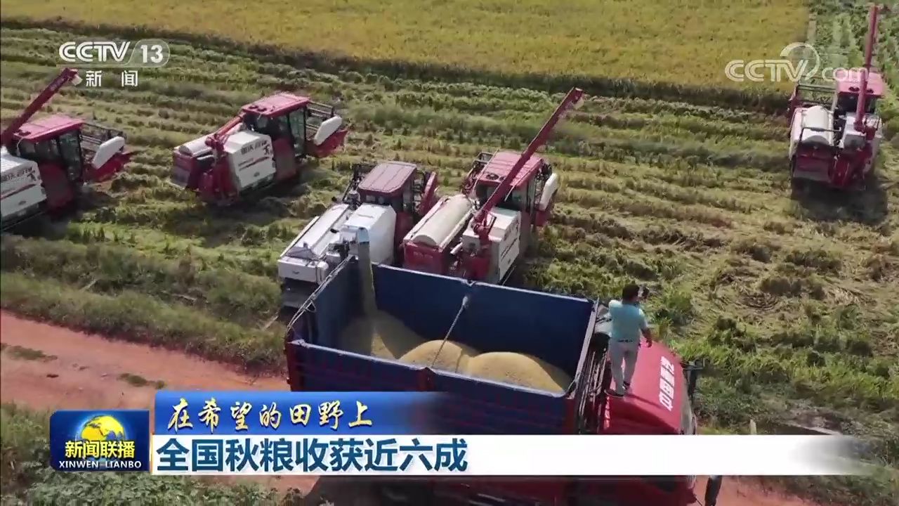 央視網(wǎng)消息(新聞聯(lián)播):據(jù)農(nóng)業(yè)農(nóng)村部最新農(nóng)情調(diào)度,目前,全國秋糧收獲近六成。各糧食產(chǎn)區(qū)搶抓農(nóng)時開展機(jī)收作業(yè),確保秋糧顆粒歸倉。