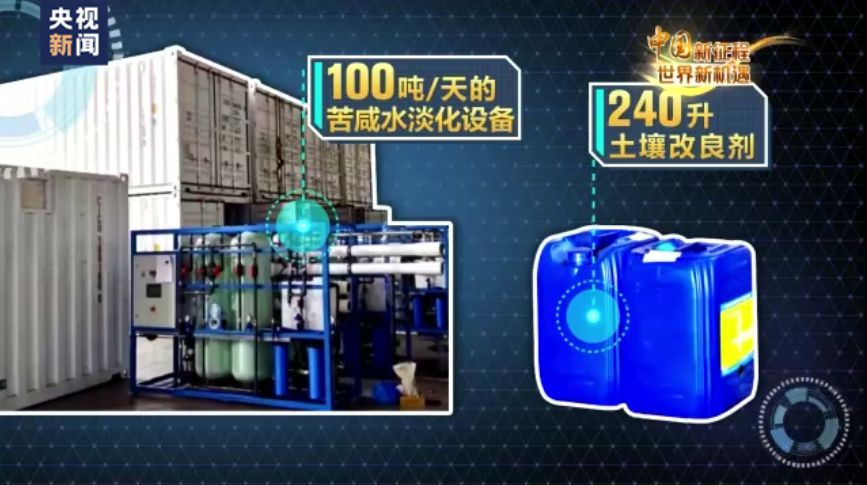 中非鹽水農(nóng)業(yè)示范農(nóng)場(chǎng)技術(shù)人員:經(jīng)過淡化的水含鹽量約為500ppm,而淡化之前,地下水的原本含鹽量可以看到是稍高于4000ppm。這真是太了不起了。