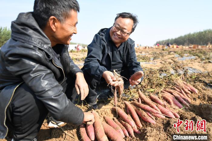 與此同時(shí),距離固安縣馬莊鎮(zhèn)200公里外的河北省秦皇島市盧龍縣夾河灘村清喜甘薯種植基地,1700多畝鮮食甘薯也迎來(lái)豐收季。