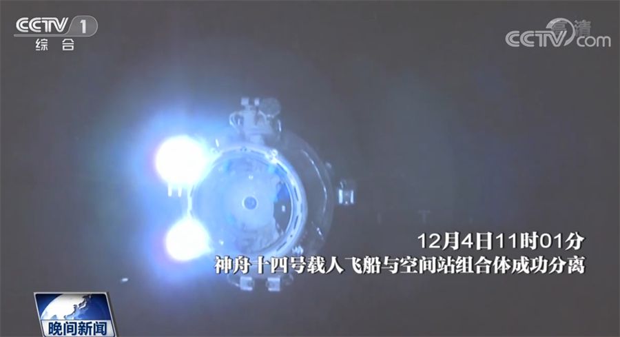 19時(shí)20分,北京航天飛行控制中心通過(guò)地面測(cè)控站發(fā)出返回指令,神舟十四號(hào)載人飛船軌道艙與返回艙成功分離。此后,飛船返回制動(dòng)發(fā)動(dòng)機(jī)點(diǎn)火,返回艙與推進(jìn)艙分離。