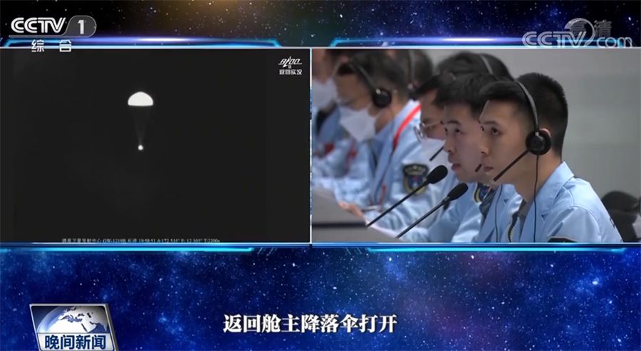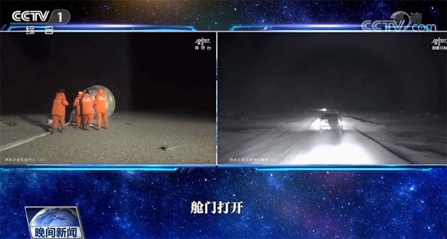 返回艙成功著陸后,擔(dān)負(fù)搜救回收任務(wù)的搜救分隊(duì)及時(shí)發(fā)現(xiàn)目標(biāo)并抵達(dá)著陸現(xiàn)場(chǎng)。返回艙艙門打開后,醫(yī)監(jiān)醫(yī)保人員確認(rèn)航天員身體健康。