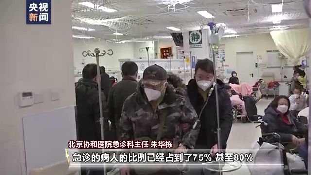 北京協(xié)和醫(yī)院急診科主任 朱華棟:我從醫(yī)大概有30來年了,可以說是最困難的一個(gè)時(shí)候。病人量多,還有危重程度也超過平時(shí)。像在以往的話,一、二、三級(jí)占的比例平均平時(shí)的話也就是在50%左右。最近這幾天我們監(jiān)測到一、二、三級(jí)這些急診的病人比例已經(jīng)占到了75%,甚至80%,危重病人的比重高,可以說這是一個(gè)前所未有的挑戰(zhàn)。