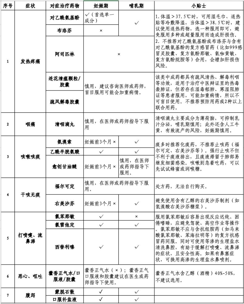具體有哪些常備藥物適合孕期的“準媽媽”和哺乳期媽媽應對新冠呢?請參考陸軍軍醫(yī)大學陸軍特色醫(yī)學中心藥劑科整理的用藥指南。