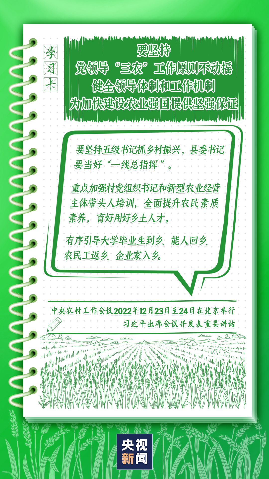 中央農(nóng)村工作會議12月23日至24日在北京舉行。習近平總書記出席會議并發(fā)表重要講話強調(diào),錨定建設農(nóng)業(yè)強國目標,切實抓好農(nóng)業(yè)農(nóng)村工作。如何建設農(nóng)業(yè)強國?總書記給出了“路線圖”,一起學習↓