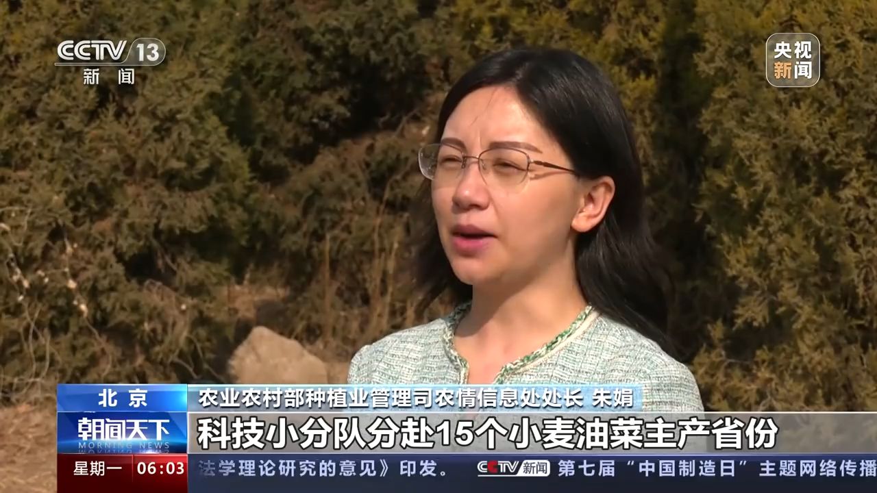 農(nóng)業(yè)農(nóng)村部種植業(yè)管理司農(nóng)情信息處處長 朱娟:科技小分隊(duì)分赴15個(gè)小麥油菜主產(chǎn)省份,包片蹲點(diǎn),指導(dǎo)落實(shí)以“控旺促弱、抗旱防凍、防病治蟲”為重點(diǎn)的春季田管關(guān)鍵措施,全力以赴打贏夏糧豐收第一仗。(央視新聞客戶端)