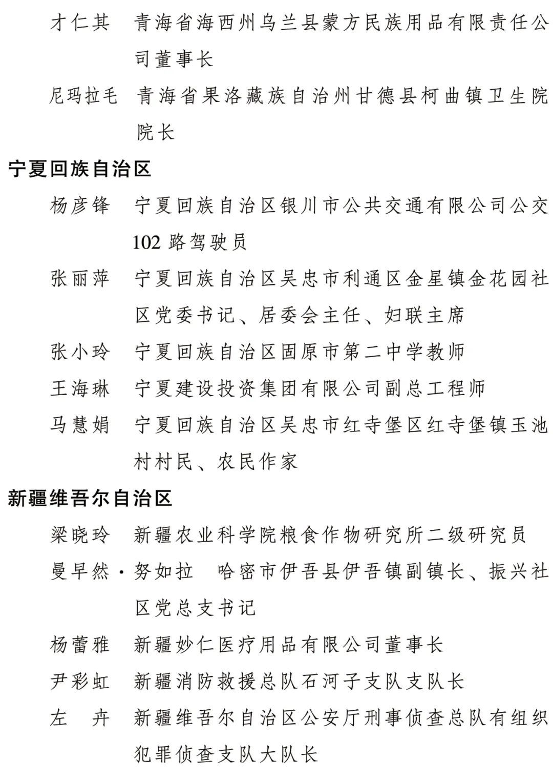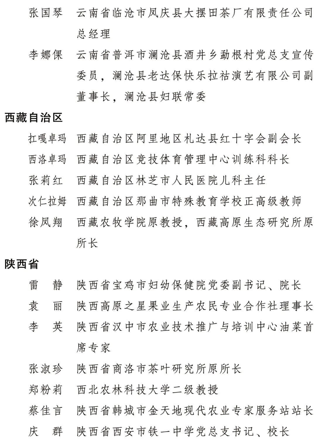全國(guó)三八紅旗手名單