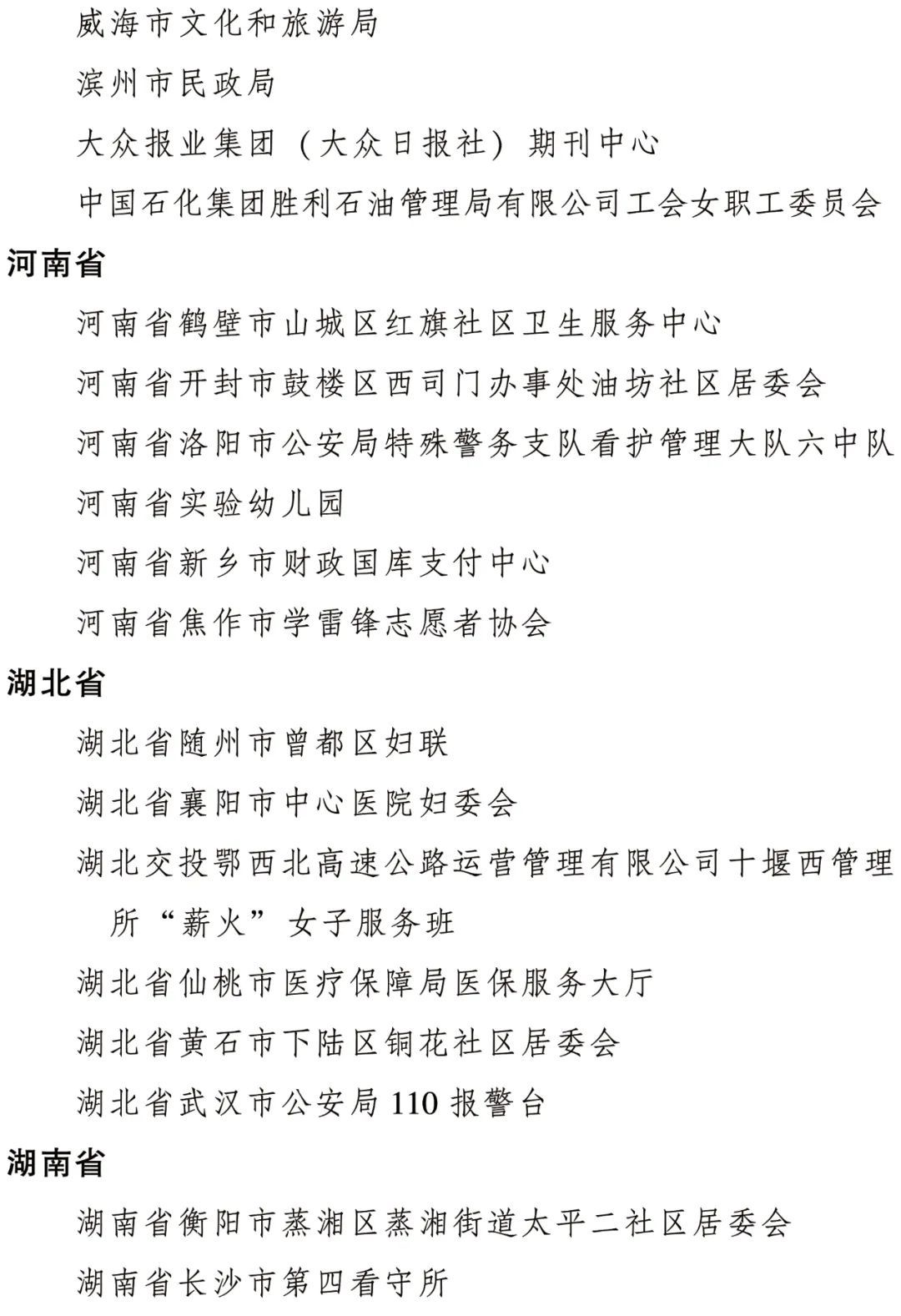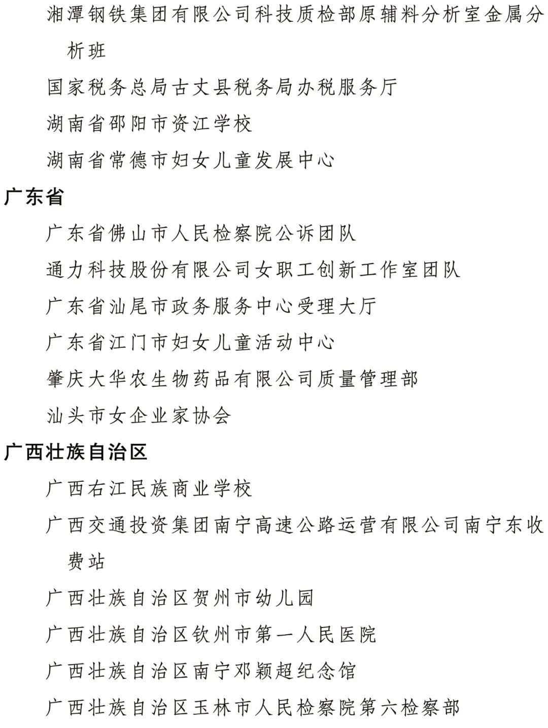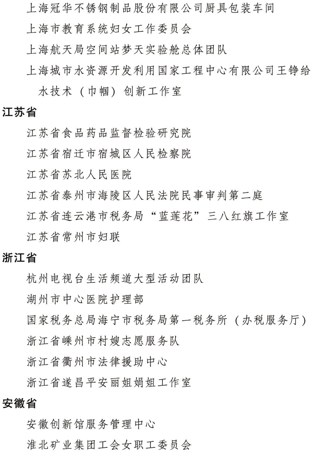 全國(guó)三八紅旗集體名單